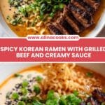 Spicy Korean Ramen with Grilled Beef & Creamy Sauce Recipe