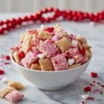 Strawberry Crunch Muddy Buddies is a delightful and colorful twist on the classic snack mix. Combining crispy Chex cereal, sweet white melting chocolate, and tangy freeze-dried strawberries, this treat is covered in powdered sugar and strawberry crunch crumbles, then sprinkled with festive Valentine-themed candies for an irresistible, crunchy, and fruity snack perfect for celebrations or anytime indulgence.