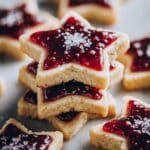 Right after baking, let the cookies rest for a few minutes on the pan so they firm up enough to handle, but don’t cool completely. Then transfer them to a wire rack. While still warm, add a small spoonful of your chosen jam to the center of each cookie—this warmth helps the jam spread just perfectly without running. Finally, sprinkle sparkling sugar over the jam and cookie edges for a dazzling, festive look and a delightful crunch. Allow your shortbread to cool completely before storing or serving, so the jam sets beautifully and each cookie has that signature tender yet crisp texture.
