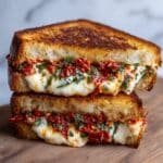 This Sun-Dried Tomato Pesto Grilled Cheese is a delightful twist on the classic grilled cheese sandwich. Featuring tangy sun-dried tomato pesto and creamy mozzarella cheese, it's a perfect blend of rich flavors and gooey textures. Quick to prepare and perfect for a comforting lunch or snack.