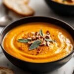 This Thai Coconut Pumpkin Soup is a creamy, fragrant dish combining the sweetness of pumpkin with the rich flavors of Thai red curry and coconut milk. It’s a comforting and vibrant soup, perfect as a starter or light meal, topped with optional garnishes like crispy shallots, fresh coriander, and a touch of heat from cayenne pepper.