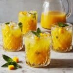 This Tropical Mango Pineapple Punch is a refreshing and vibrant non-alcoholic beverage perfect for warm weather gatherings. Combining the sweet and tangy flavors of mango, pineapple, orange, and lime juices, it offers a perfect balance of tropical taste and citrus zing. Garnished with fresh fruit pieces and mint leaves, this punch is both visually appealing and deliciously hydrating.