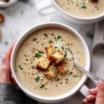 This soup freezes okay, but the cream can sometimes separate after thawing. To prevent a grainy texture, cool completely, store in a freezer-safe container, and thaw slowly in the refrigerator overnight. Reheat gently and stir often. Alternatively, make the base soup without cream, freeze that, then add dairy fresh when reheating.